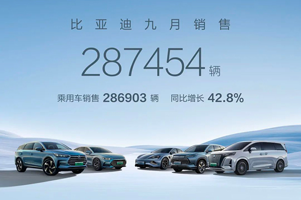 今年前三季度,比亚迪累计销量为207.96万辆,同比增长75.48%。至此,比亚迪新能源汽车累计销量已超540万辆。
