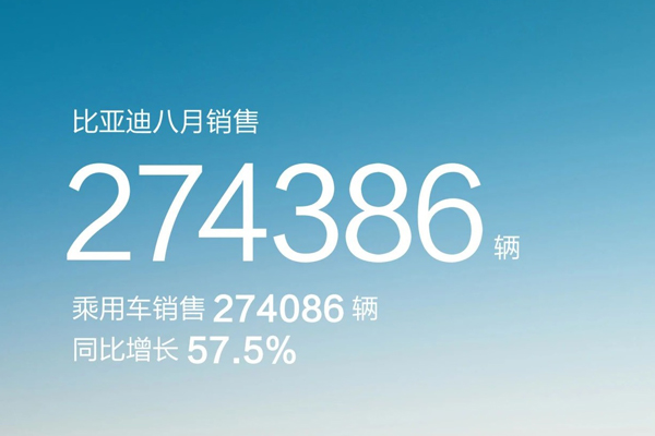 1-8月,比亚迪累计销售179.22万辆。截至目前,比亚迪新能源累销已超510万辆。
