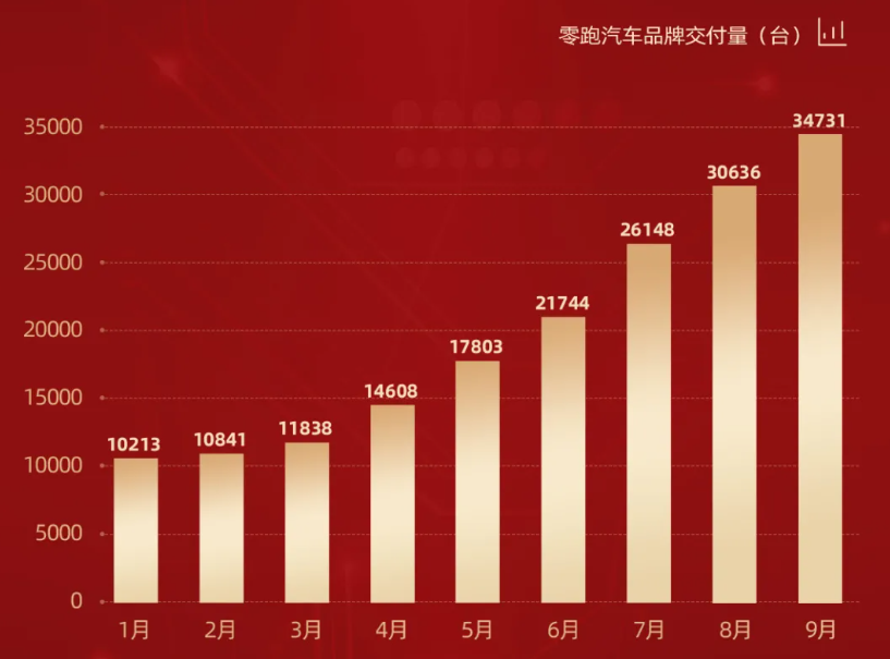 9月零跑汽车交付达4095台,同比增长432%。因部分芯片供应不足,零跑交付量较8月略有下降。