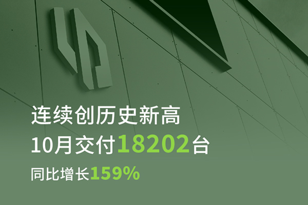 零跑汽车10月交付18,202辆,同比增长159%,继续保持强劲增长势头,并连续创下历史新高。
