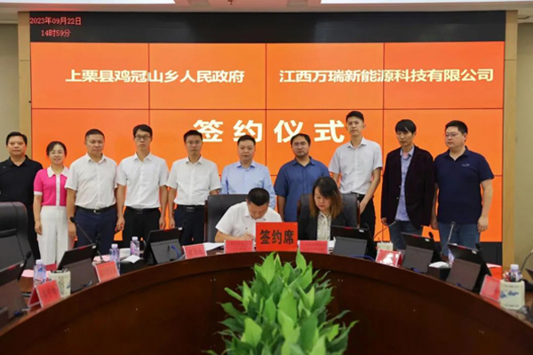9月22日,江西省萍乡市上栗县鸡冠山乡人民政府与江西万瑞新能源科技有限公司签约仪式举行。