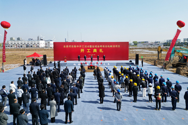 4月7日,江苏盐城滨海县项目集中开工暨盐城金晖电池电解液项目开工活动在滨海县沿海工业园举行。金晖项目总投资10亿元,开发高品...