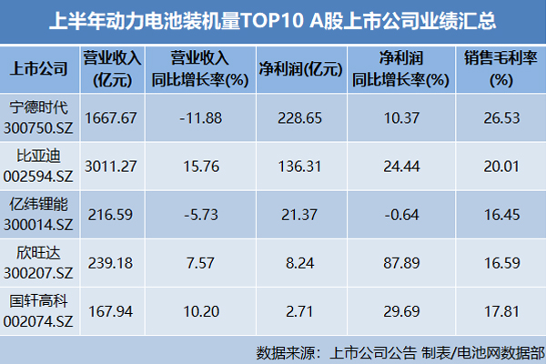 从业绩表现来看,上半年,动力电池装车量TOP10中5家A股上市公司(宁德时代、比亚迪、亿纬锂能、国轩高科、欣旺达)净利仅亿纬...