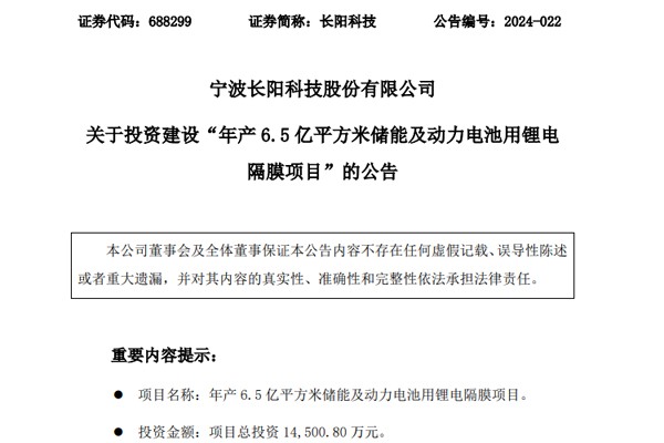 长阳科技本次项目投资额为1.45亿元,规划年产能6.5亿㎡,项目建设涉及生产设备、附属设备等采购及安装等。