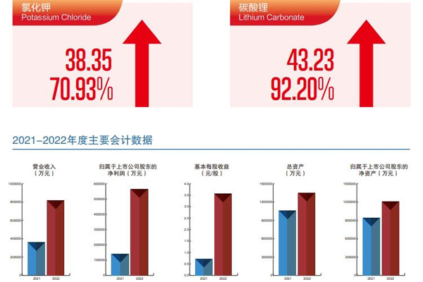 盐湖股份表示,2022年,公司主营业务氯化钾产销稳定,氯化钾产量约580万吨,销量约494万吨;碳酸锂产量约3.10万吨,销...