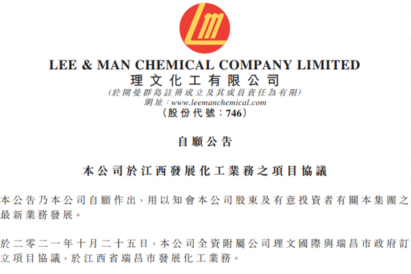 理文国际拟投资生产高端氟聚合物及锂电池新材料,项目拟定生产规模为年产2万吨聚偏氟乙烯(PVDF)、1万吨六氟磷酸锂,并配套新...