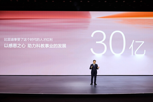 比亚迪捐资30亿聚焦教育慈善,用于高校奖学金及新能源技术科普,助推中国科教事业的蓬勃发展。