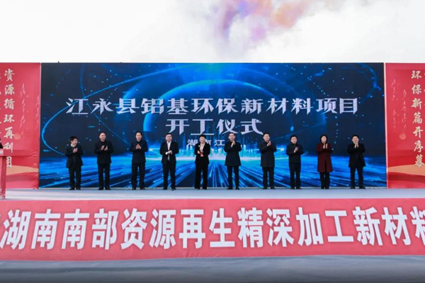 此次开工的江永铝基环保新材料项目总投资60亿元,业务涵盖再生铝有色金属资源回收利用,废旧锂电池回收资源再生,阻燃剂、铝基环保...