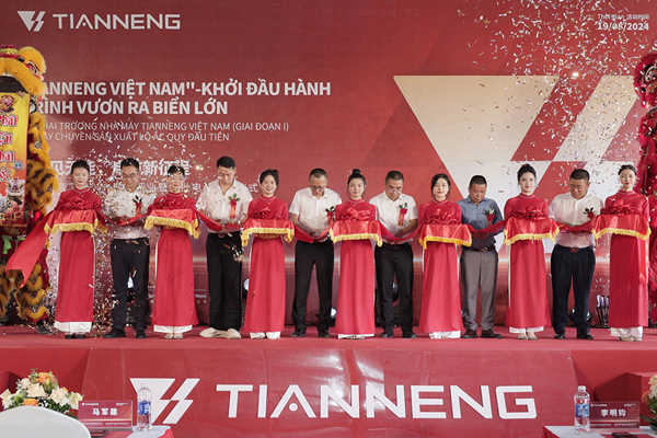 8月19日,在越南义安省荣市,天能开启首个海外生产基地,首批新能源环保动力电池下线。