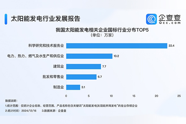 我国现存57.2万家太阳能发电相关企业。截至12月16日,2024年我国已注册17.10万家太阳能发电相关企业,已超2023...